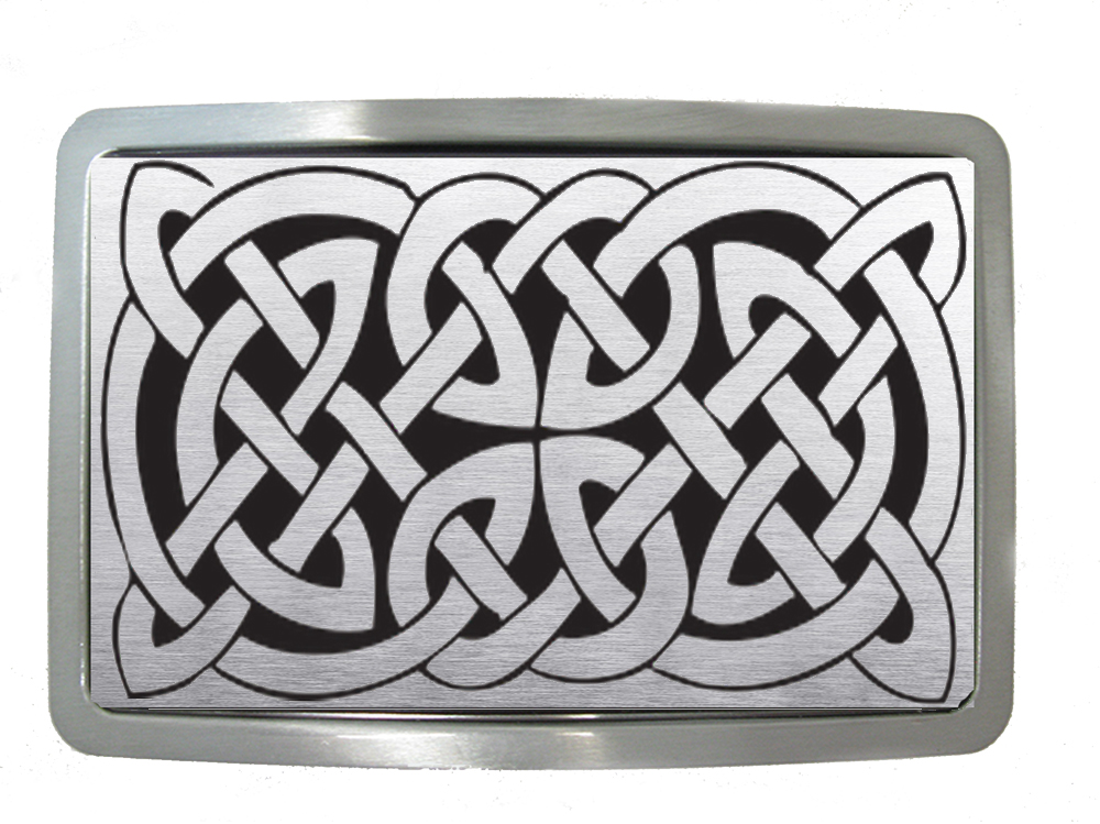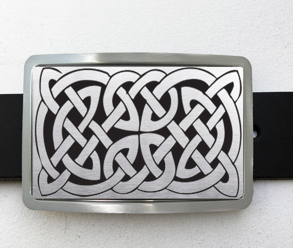 Boucle de ceinture de forme rectangle représentant un design celtique